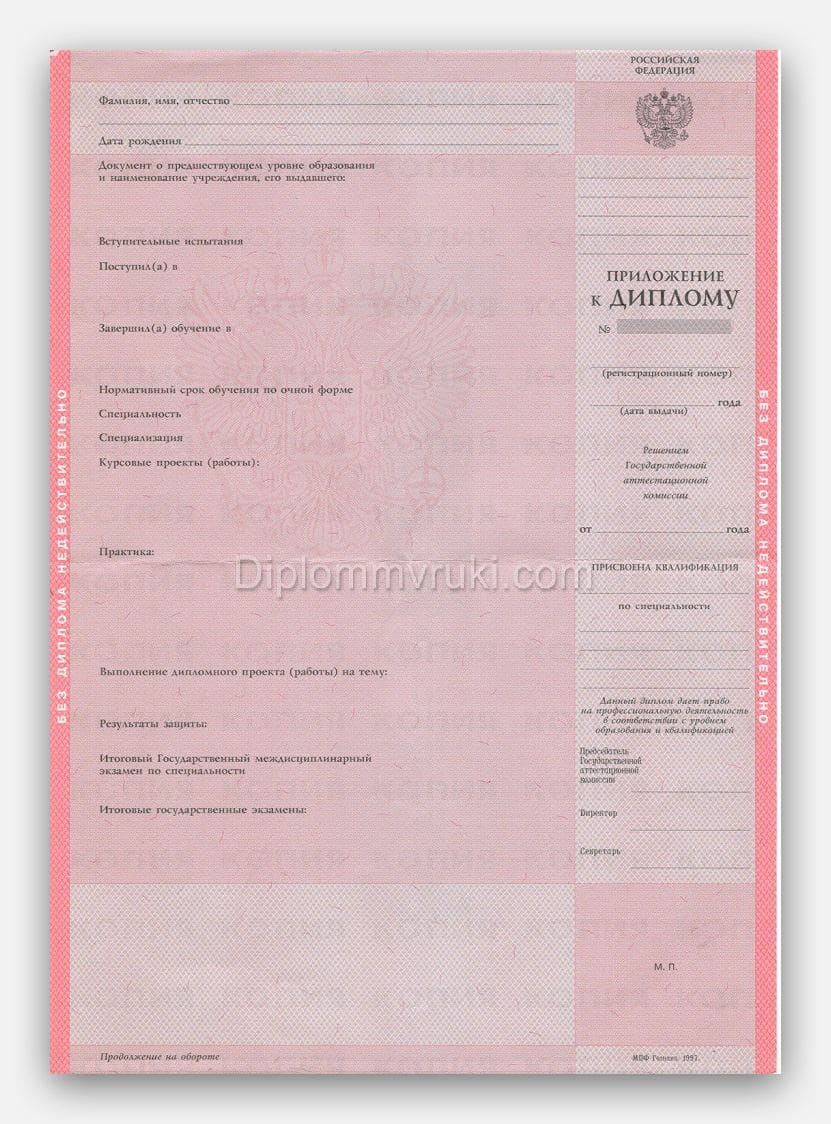 Диплом о высшем образовании до 1996 года Бланк Гознак