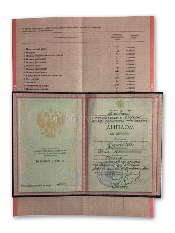 КонфиденциальностьДиплом техникума о среднем образовании 1997 - 2003 года