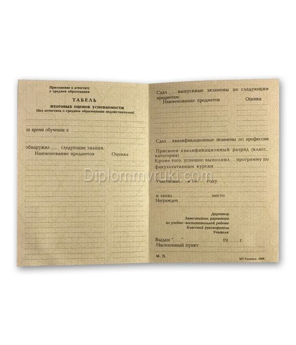 Сегодня без документа об образовании невозможно получить достойную работу или продолжить образование. Аттестат СССР (РСФСР) до 1993 года имеет специфические особенности. И если именно в этом году вы должны были получить данный документ, то мы готовы изготовить его в кратчайшие сроки по выгодной цене.